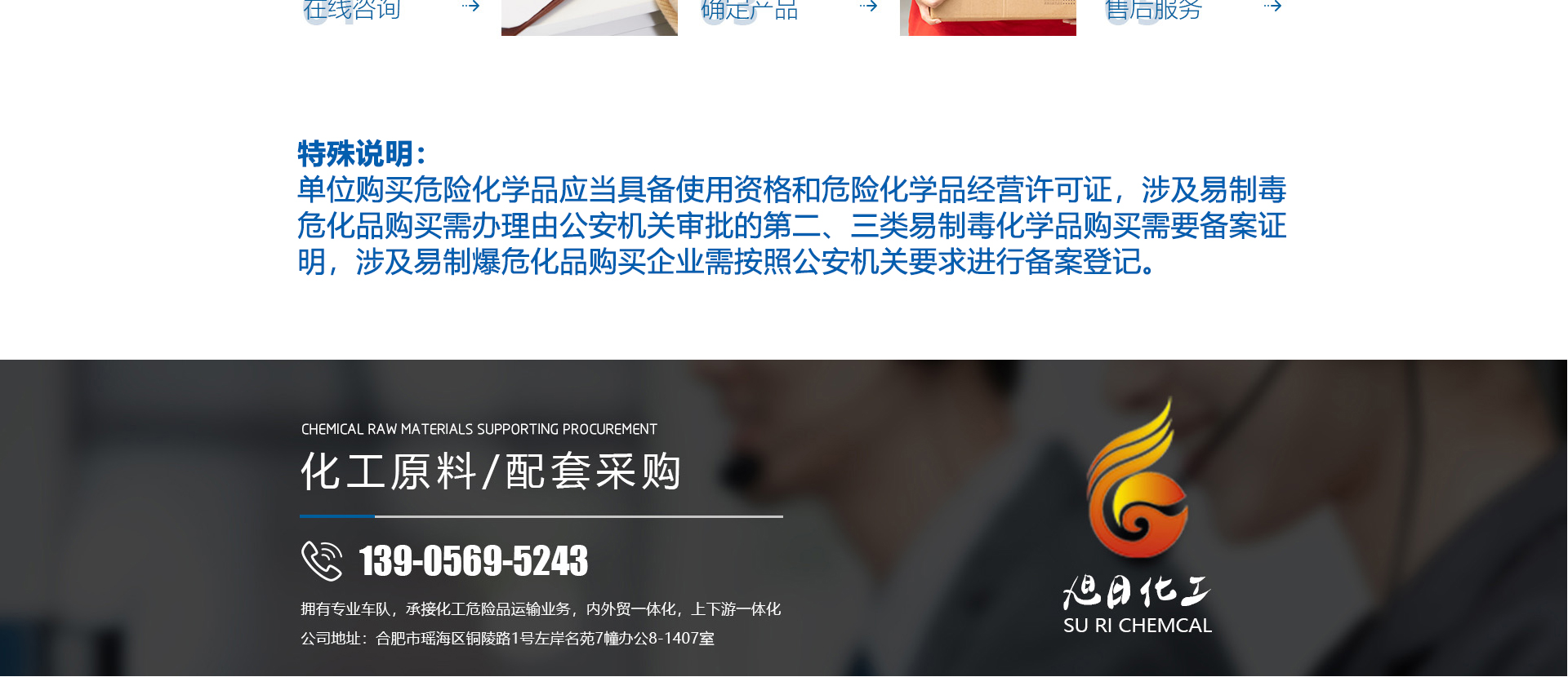 合肥旭日化工有限公司是合肥市化工行業(yè)協(xié)會(huì)理事單位,該公司擁有獨(dú)立的供貨能力,專業(yè)的車隊(duì),良好的商業(yè)信譽(yù),完善的售后服務(wù)。秉承“精細(xì)化工、質(zhì)量為本、用戶至上、誠實(shí)守信”的企業(yè)理念。從事各類化工溶劑和原料的國內(nèi)貿(mào)易;為各醫(yī)1藥化工廠、印刷皮革廠、電子工廠等提供各種化工原料配套采購。目前,公司正朝著以貿(mào)易為基礎(chǔ)、以實(shí)業(yè)為依托,全球采購、全國銷售,內(nèi)外貿(mào)一體化,上下游一體化,具有綜合增值能力和復(fù)合競爭能力化工原料供應(yīng)商。本公司主要經(jīng)營的產(chǎn)品有:鹽酸、硫酸、三氯化鐵、甲醛、氨水、液氨、片堿等。合肥旭日化工有限公司為客戶提供優(yōu)良的服務(wù)及高品質(zhì)的產(chǎn)品,本公司經(jīng)銷的各種產(chǎn)品不僅在安徽地區(qū)深受用戶好評,而且具有很高的市場占有率,產(chǎn)品行銷全國各地區(qū)。